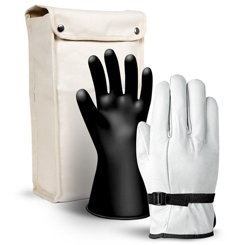 In stockTE 990 Electrical Rubber Glove Kit Leather Protectors Bag Black Class 0 11'' GK011B Kit Includes: Class 0 Gloves, Leather Protectors, Glove BagMee...